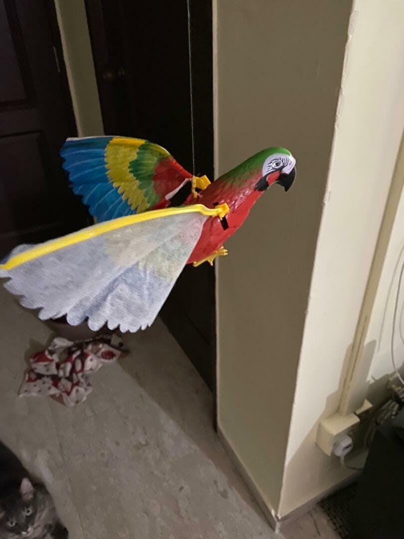 😻BATTERY OPERATED: You can fix it on the floor or wall, and the cat will play with it inside when you're out. Just turn it on and the bird will simulate a flying playful angel for the cat.